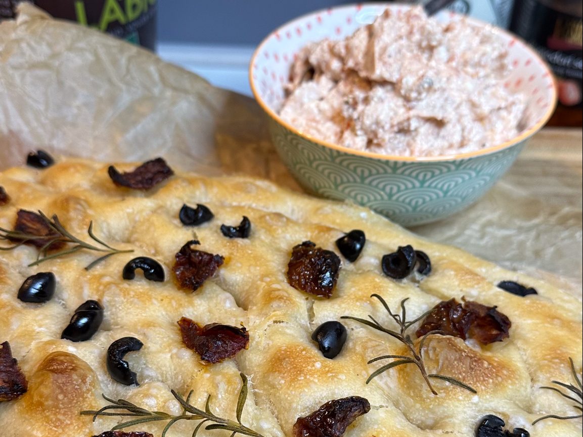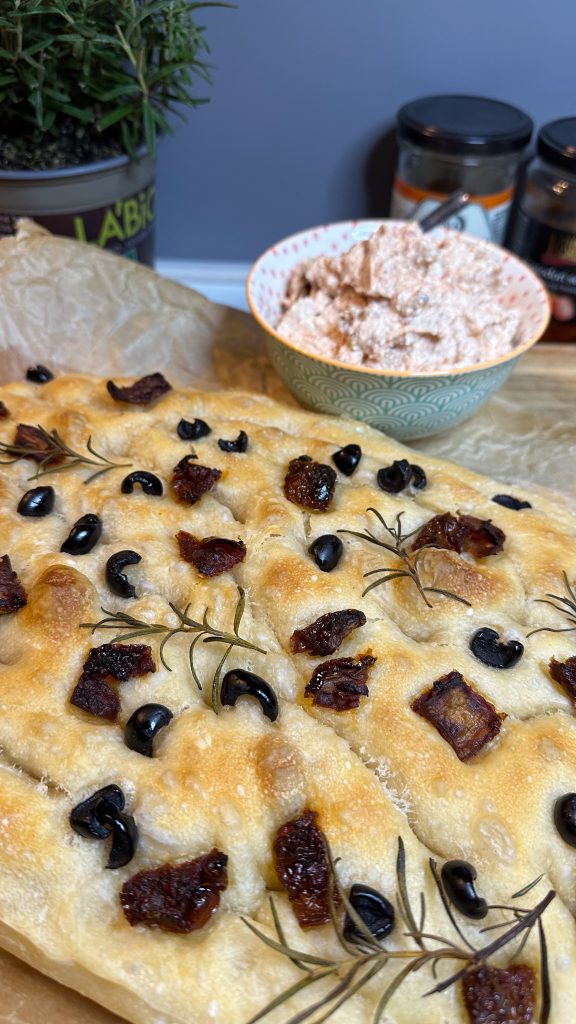 Für meinen letzten Mädelsabend bei uns habe ich dieses super fluffige Foccacia mit Sauerteig, getrockneten Tomaten und Oliven mit frischem Rosmarin gemacht. Die Damen waren begeistert und haben fleißig zugelangt.