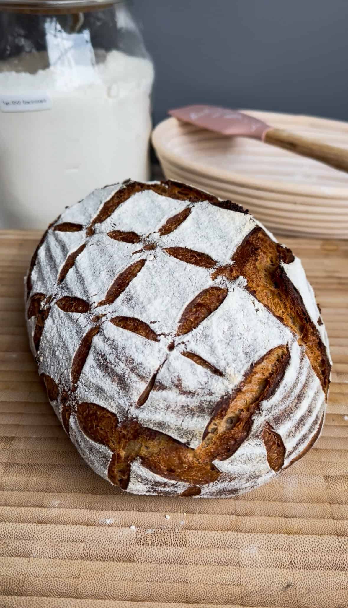 - ab in den Ofen mit dem Brot auf die Baking Steel gesetzt und mit der Baking Shell von Brod & Taylor abgedeckt & 20 min bei 250 Grad backen lassen