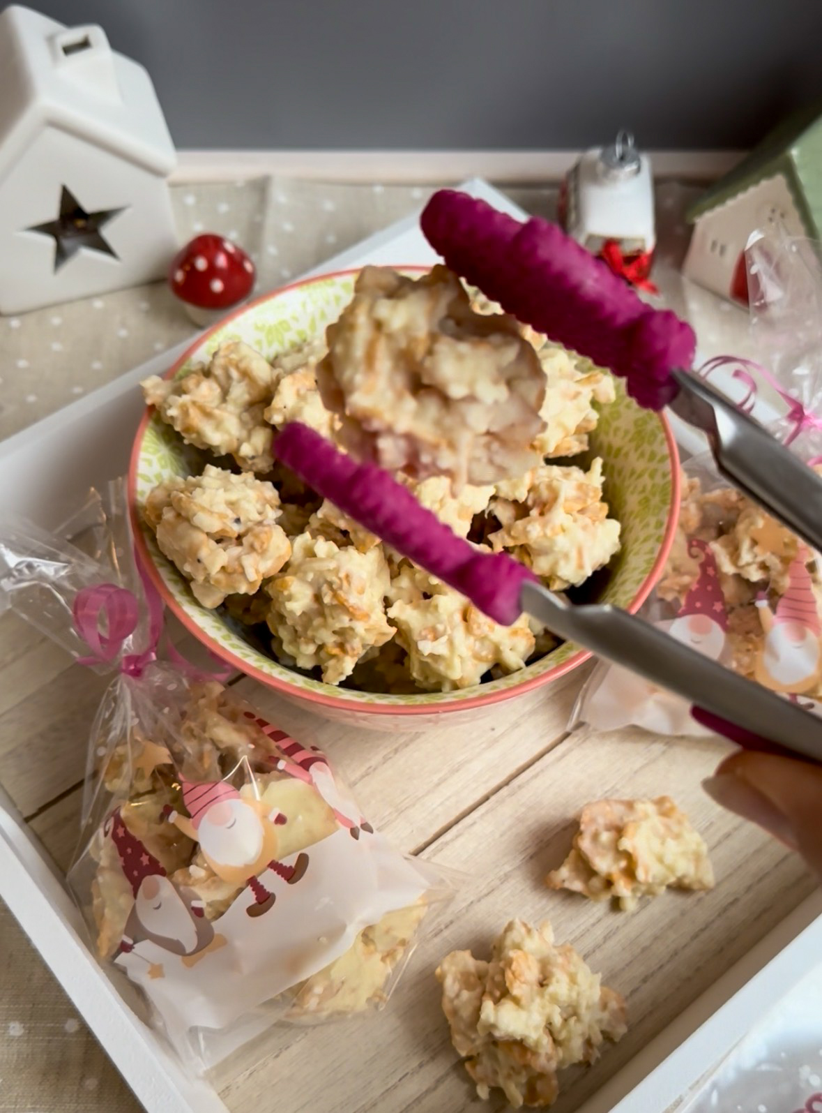 Erst habe ich an meiner Menge gezweifelt 😂, aber im Nachhinein war ich super glücklich 😃, dass ich diese Mengen genommen habe, denn die Raffaello Crossies haben sich quasi in Luft aufgelöst und ich musste mich beeilen, dass ich meine Mitbringsel-Tütchen noch füllen konnte.