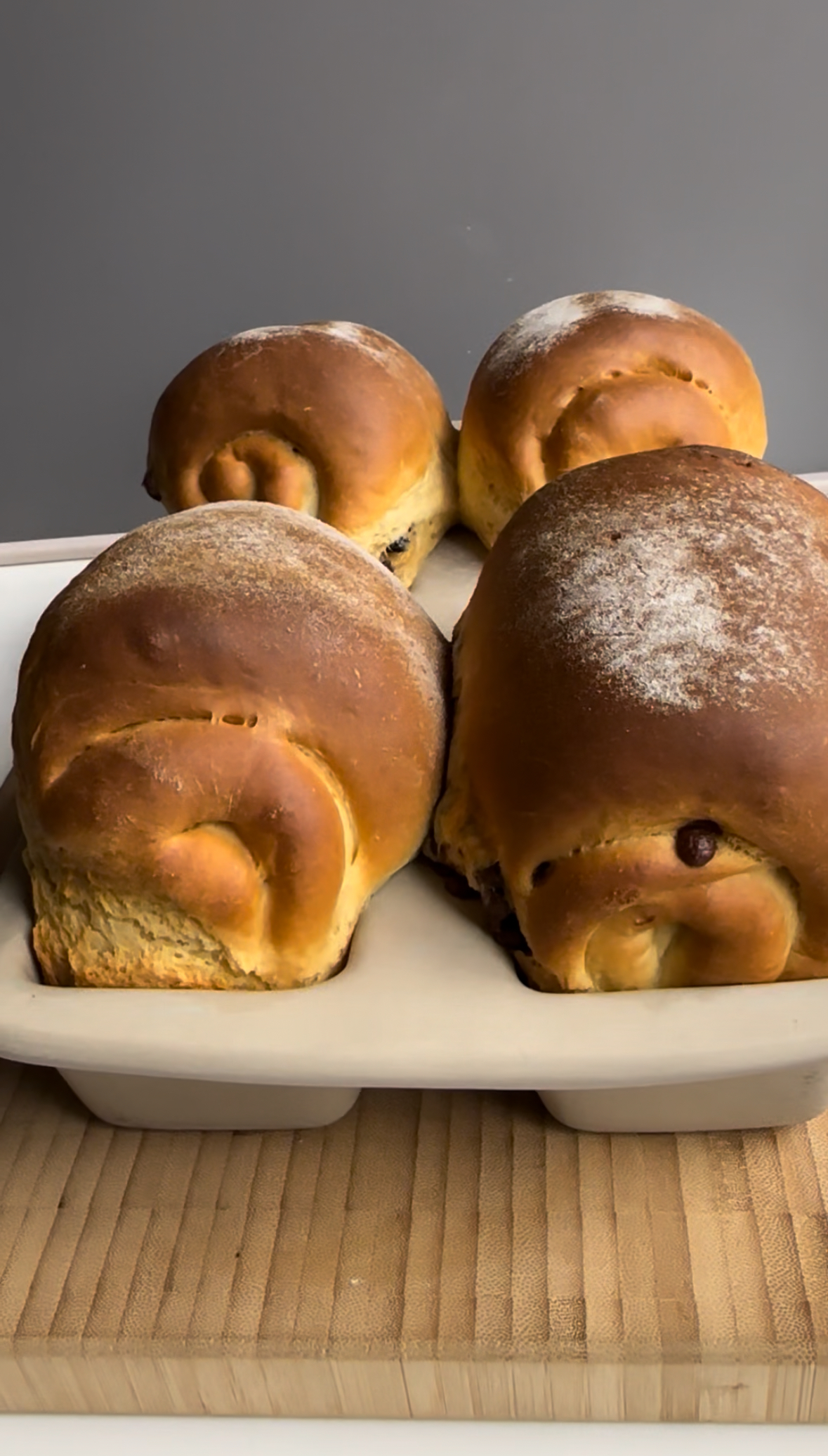 leckere 4 kleine Stuten – für jeden etwas dabei – mit Schoko, mit Rosinen und 2 einfach so belassen