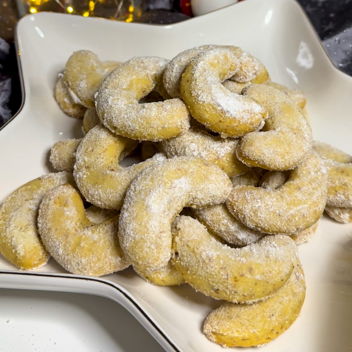- Vanillezucker und Puderzucker in einer Schale mischen und noch die sehr warmen Kipferl vorsichtig darin wälzen/wenden