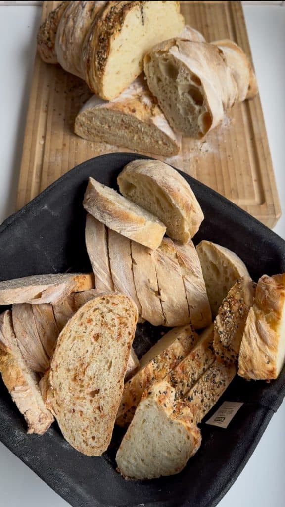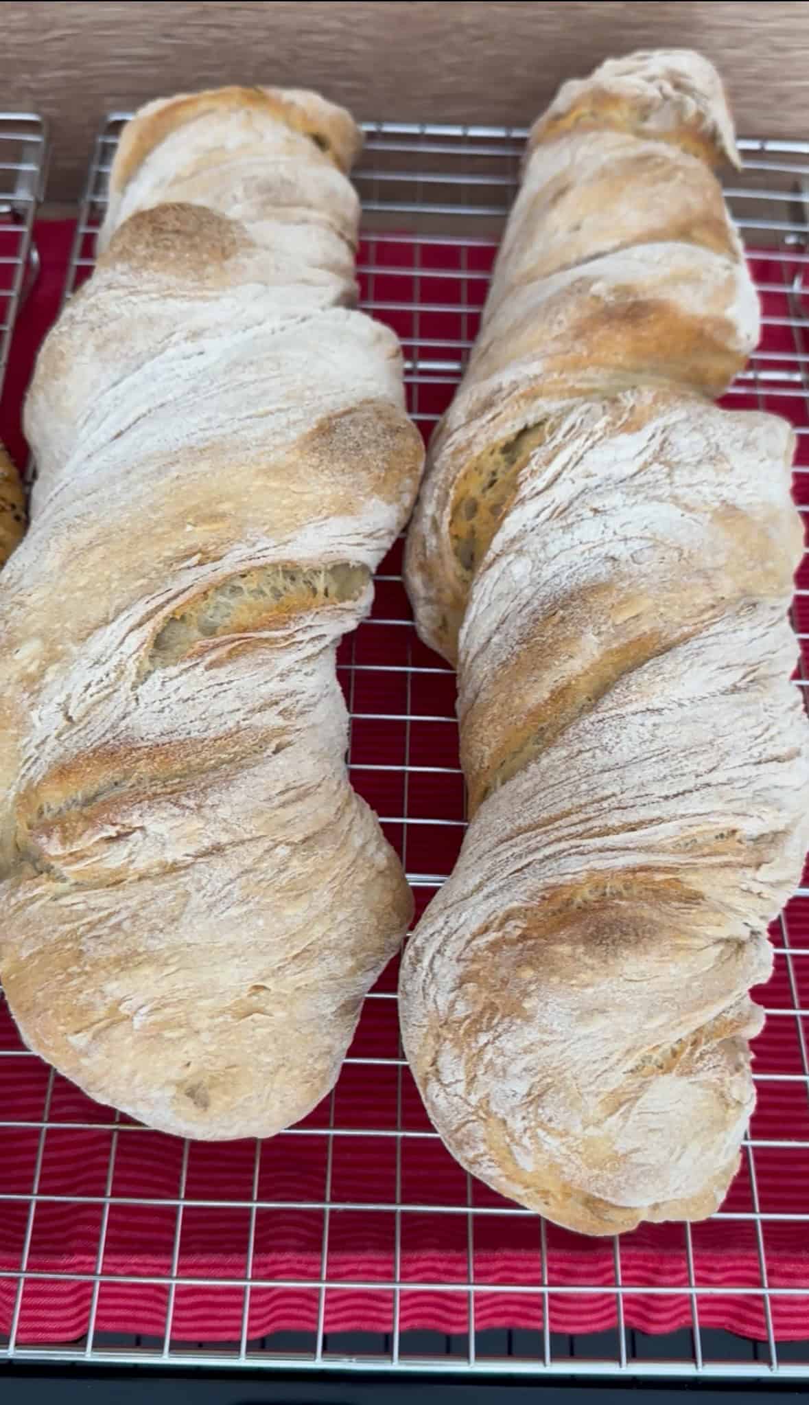 - In den Backofen geben und Wasserdampf einschwaden (mein Backofen hat dafür ein Programm, sonst musst du ein Backblech mit aufheizen und dort Wasser hineinschütten).